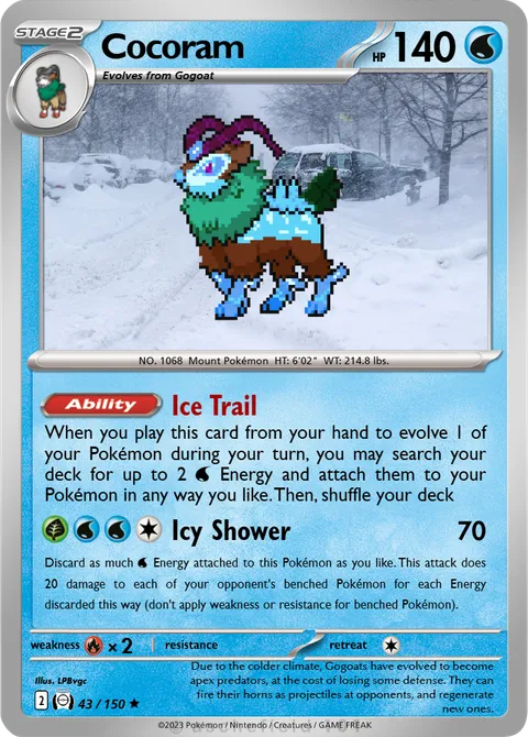 When you play this card from your hand to evolve 1 of your Pokémon during your turn, you may search your deck for up to 2 W Energy and attach them to your Pokémon in any way you like. Then, shuffle your deckIcy Shower • 70