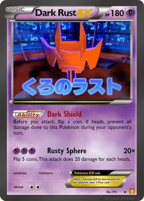Before you attack, flip a coin. If heads, prevent all damage done to this Pokémon during your opponent's turn.Rusty Sphere • 20×