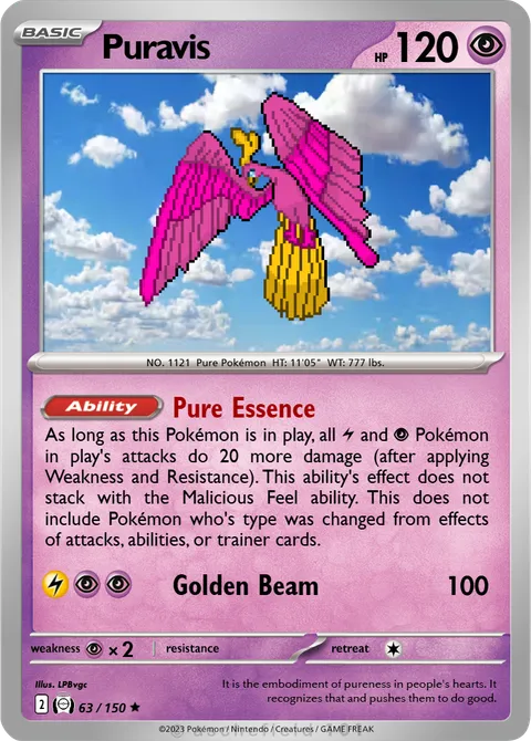 As long as this Pokémon is in play, all L and P Pokémon in play's attacks do 20 more damage (after applying Weakness and Resistance). This ability's effect does not stack with the Malicious Feel ability. This does not include Pokémon who's type was changed from effects of attacks, abilities, or trainer cards.Golden Beam • 100