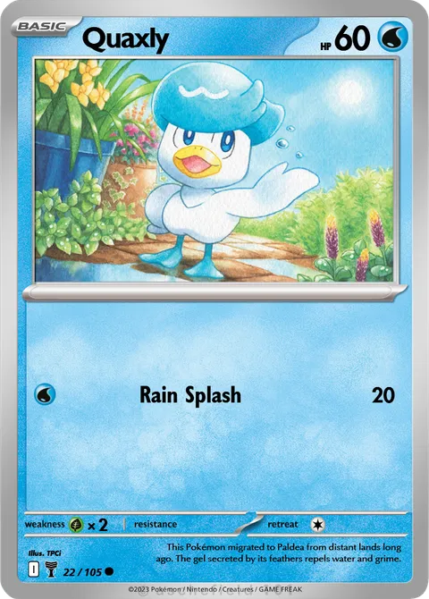 This Pokémon migrated to Paldea from distant lands long ago. The gel secreted by its feathers repels water and grime.