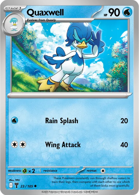 These Pokémon constantly run through shallow waters to train their legs, then compete with each other to see which of them kicks most gracefully.