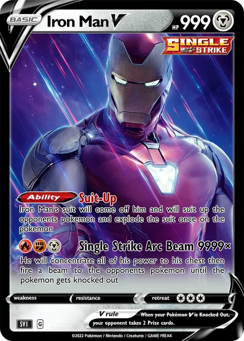 Iron Man's suit will come off him and will suit up the opponents pokemon and explode the suit once on the pokemonSingle Strike Arc Beam • 9999×