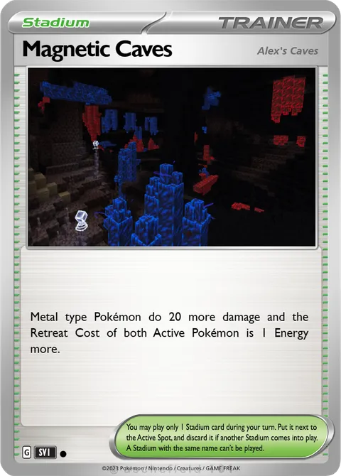 Metal type Pokémon do 20 more damage and the Retreat Cost of both Active Pokémon is 1 Energy more.