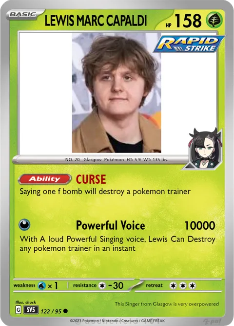 With A loud Powerful Singing voice, Lewis Can Destroy any pokemon trainer in an instant