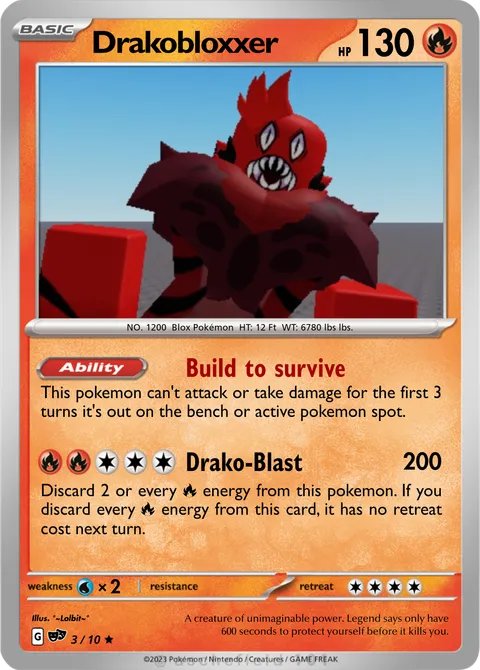 NO. 1200 Blox Pokémon HT: 12 Ft WT: 6780 lbs lbs.illus. °~Lolbit~°#3/10A creature of unimaginable power. Legend says only have 600 seconds to protect yourself before it kills you.Created by @LolbitTheJester on 05 December 2024