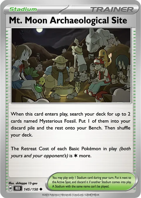 When this card enters play, search your deck for up to 2 cards named Mysterious Fossil. Put 1 of them into your discard pile and the rest onto your Bench. Then shuffle your deck. The Retreat Cost of each Basic Pokémon in play (both yours and your opponent’s) is C more.
