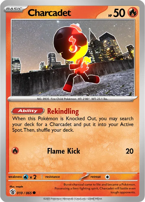 When this Pokémon is Knocked Out, you may search your deck for a Charcadet and put it into your Active Spot. Then, shuffle your deck.Flame Kick • 20
