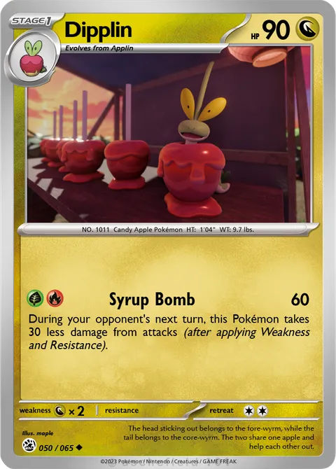 NO. 1011 Candy Apple Pokémon HT: 1'04" WT: 9.7 lbs.illus. maple#050/065The head sticking out belongs to the fore-wyrm, while the tail belongs to the core-wyrm. The two share one apple and help each other out.Created by @Maple on 22 September 2025