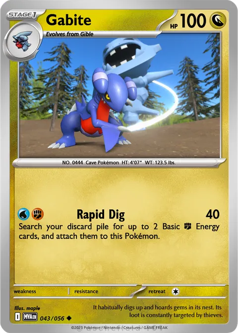 NO. 0444 Cave Pokémon HT: 4'07" WT: 123.5 lbs.illus. maple#043/056It habitually digs up and hoards gems in its nest. Its loot is constantly targeted by thieves.Created by @Maple on 20 January 2026, last edited on 20 January 2026