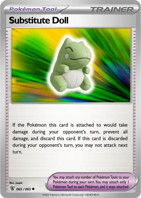 If the Pokémon this card is attached to would take damage during your opponent's turn, prevent all damage, and discard this card. If this card is discarded during your opponent's turn, you may not attack next turn.