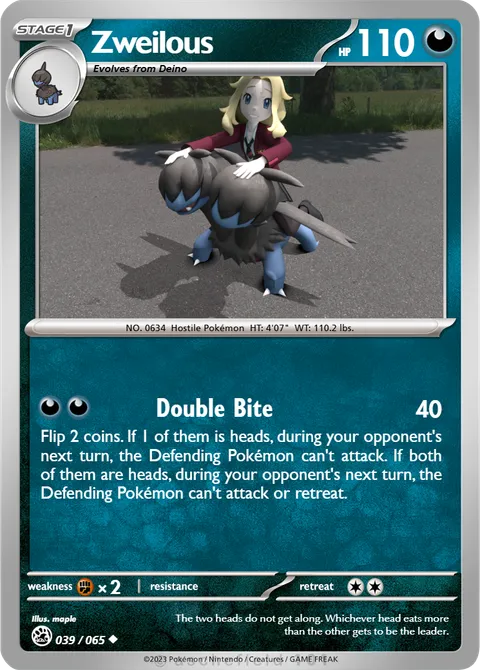 NO. 0634 Hostile Pokémon HT: 4'07" WT: 110.2 lbs.illus. maple#039/065The two heads do not get along. Whichever head eats more than the other gets to be the leader.Created by @Maple on 17 September 2025