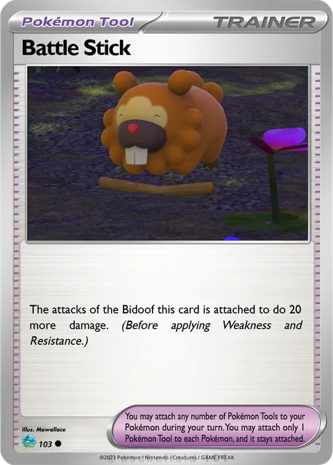 The attacks of the Bidoof this card is attached to do 20 more damage.