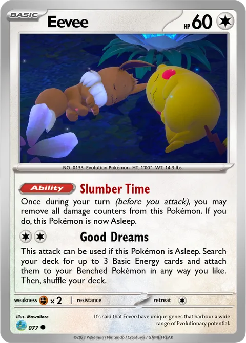 Once during your turn (before you attack), you may remove all damage counters from this Pokémon. If you do, this Pokémon is now Asleep.Good Dreams