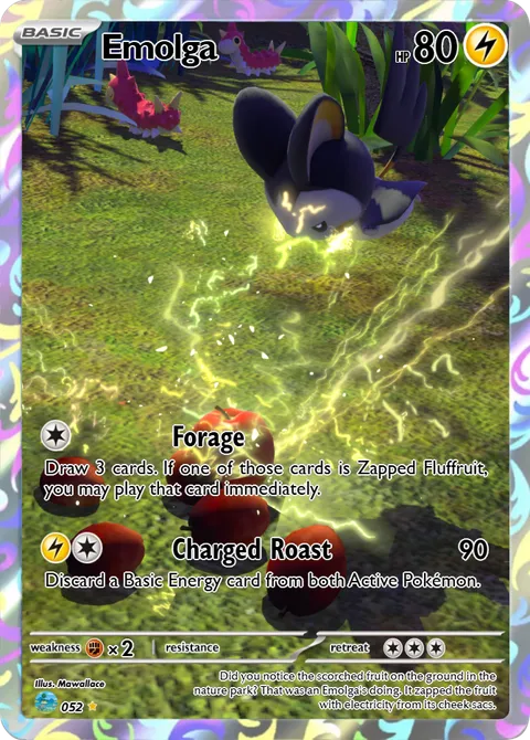 Did you notice the scorched fruit on the ground in the nature park? That was an Emolga's doing. It zapped the fruit with electricity from its cheek sacs.
