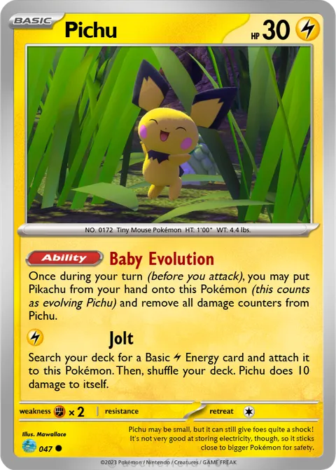Once during your turn (before you attack), you may put Pikachu from your hand onto this Pokémon (this counts as evolving Pichu) and remove all damage counters from Pichu.