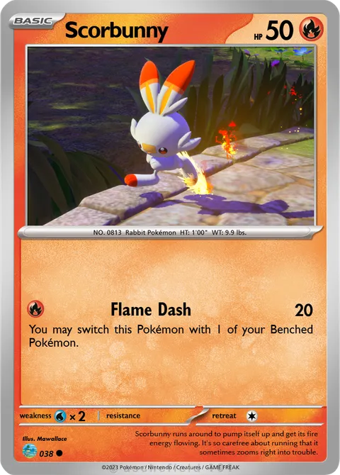 NO. 0813 Rabbit Pokémon HT: 1'00" WT: 9.9 lbs.illus. Mawallace#038Scorbunny runs around to pump itself up and get its fire energy flowing. It's so carefree about running that it sometimes zooms right into trouble.Created by @Mawallace116 on 25 July 2023