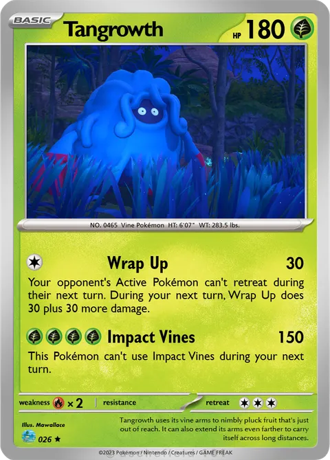Your opponent's Active Pokémon can't retreat during their next turn. During your next turn, Wrap Up does 30 plus 30 more damage.