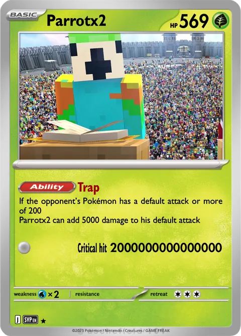 If the opponent’s Pokémon has a default attack or more of 200 Parrotx2 can add 5000 damage to his default attack