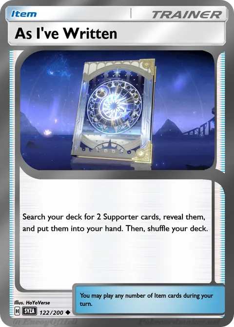 Search your deck for 2 Supporter cards, reveal them, and put them into your hand. Then, shuffle your deck.