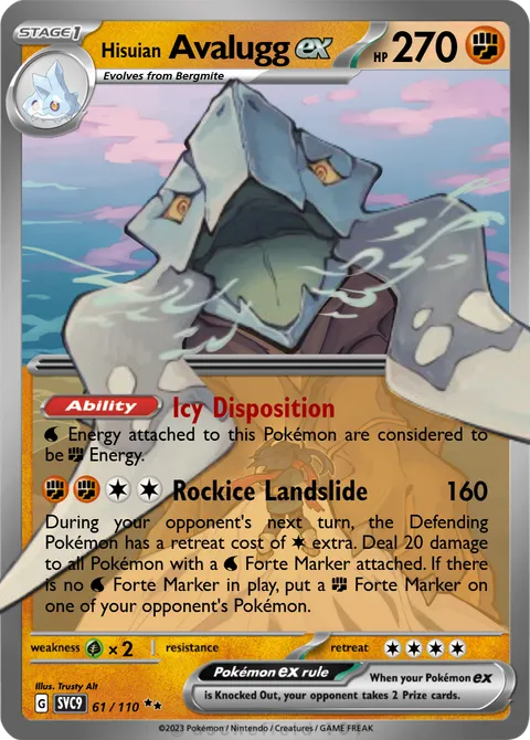 During your opponent's next turn, the Defending Pokémon has a retreat cost of C extra. Deal 20 damage to all Pokémon with a W Forte Marker attached. If there is no W Forte Marker in play, put a F Forte Marker on one of your opponent's Pokémon.