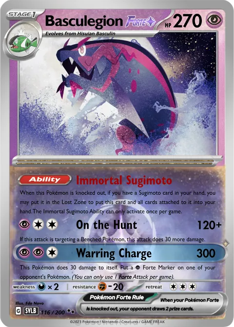 When this Pokémon is knocked out, if you have a Sugimoto card in your hand, you may put it in the Lost Zone to put this card and all cards attached to it into your hand. The Immortal Sugimoto Ability can only activate once per game.