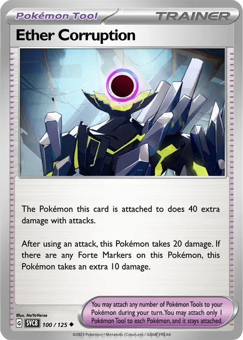 The Pokémon this card is attached to does 40 extra damage with attacks. After using an attack, this Pokémon takes 20 damage. If there are any Forte Markers on this Pokémon, this Pokémon takes an extra 10 damage.