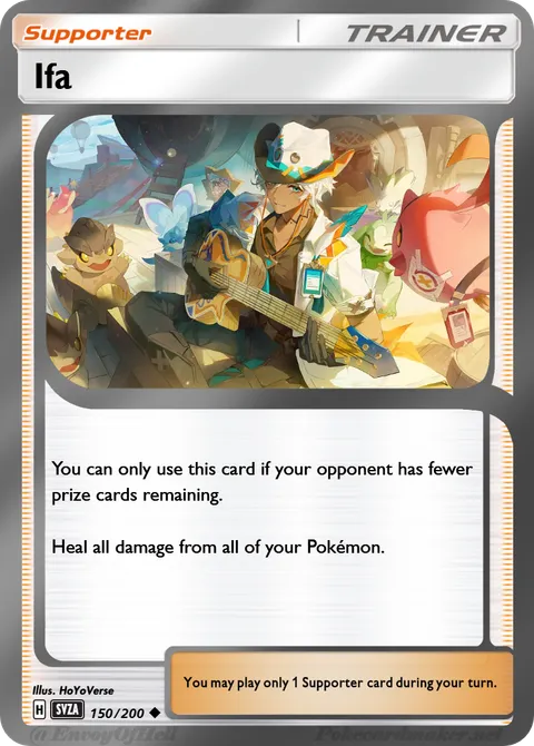 You can only use this card if your opponent has fewer prize cards remaining. Heal all damage from all of your Pokémon.