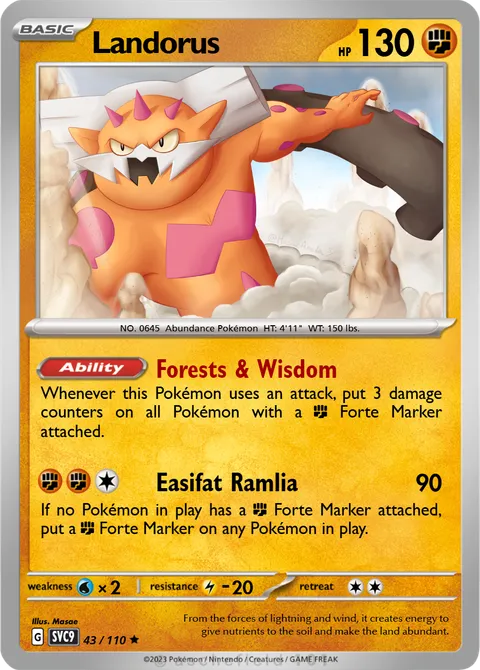 Whenever this Pokémon uses an attack, put 3 damage counters on all Pokémon with a F Forte Marker attached.Easifat Ramlia • 90