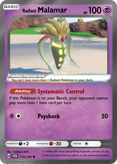 If this Pokémon is on your Bench, your opponent cannot play more than 1 Item card per turn.Psyshock • 50