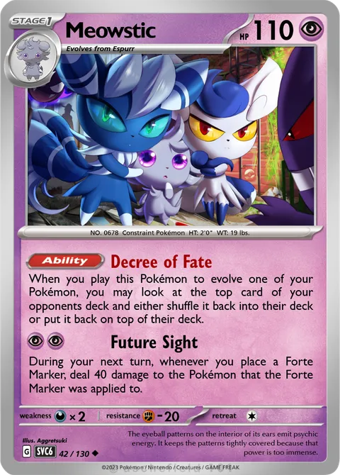 When you play this Pokémon to evolve one of your Pokémon, you may look at the top card of your opponents deck and either shuffle it back into their deck or put it back on top of their deck.Future Sight