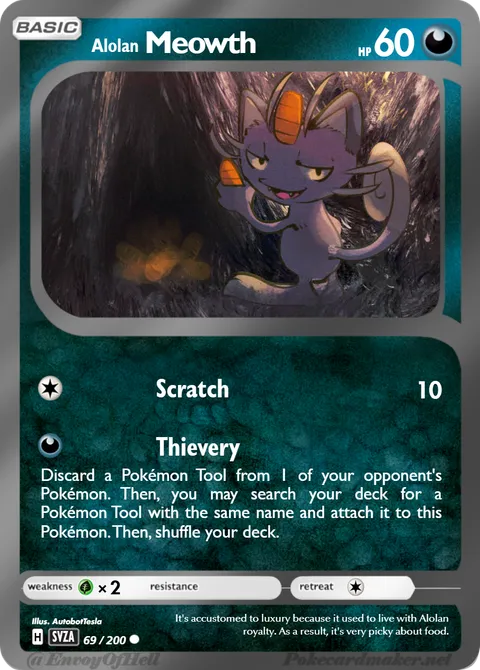 illus. AutobotTesla#69/200It's accustomed to luxury because it used to live with Alolan royalty. As a result, it's very picky about food.Created by @MegaAmpharostheDragon on 28 September 2025