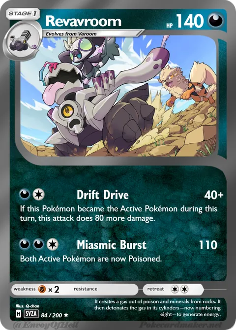illus. Q-chan#84/200It creates a gas out of poison and minerals from rocks. It then detonates the gas in its cylinders—now numbering eight—to generate energy.Created by @MegaAmpharostheDragon on 29 September 2025