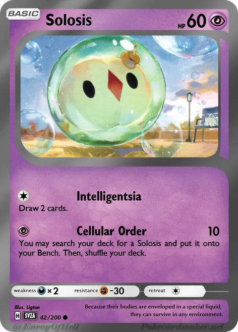 You may search your deck for a Solosis and put it onto your Bench. Then, shuffle your deck.