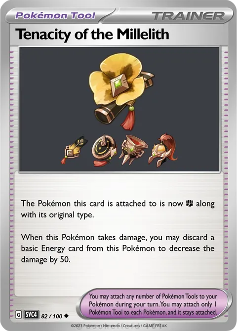 The Pokémon this card is attached to is now F along with its original type. When this Pokémon takes damage, you may discard a basic Energy card from this Pokémon to decrease the damage by 50.