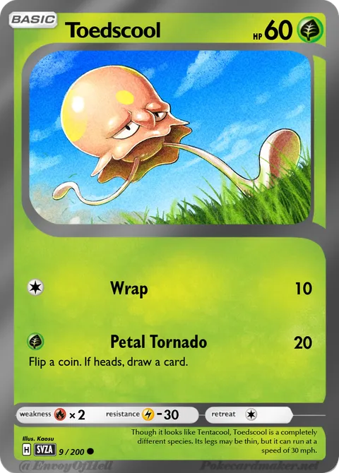 Though it looks like Tentacool, Toedscool is a completely different species. Its legs may be thin, but it can run at a speed of 30 mph.