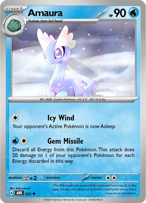 NO. 0698 Tundra Pokémon HT: 4'3" WT: 55.6 lbs.illus. kira-summit#025This Pokémon was successfully restored from a fossil. In the past, it lived with others of its kind in cold lands where there were fewer predators.Created by @Meltan808TCG on 01 September 2025.