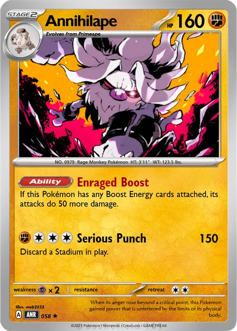 If this Pokémon has any Boost Energy cards attached, its attacks do 50 more damage.Serious Punch • 150
