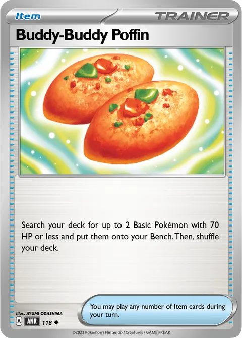 Search your deck for up to 2 Basic Pokémon with 70 HP or less and put them onto your Bench. Then, shuffle your deck.