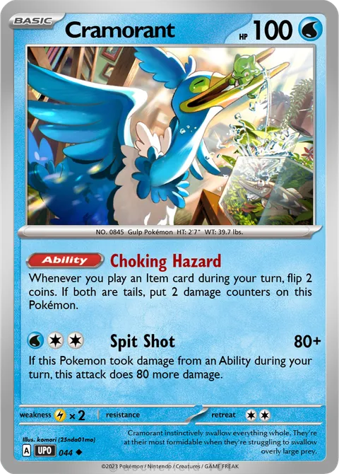 Whenever you play an Item card during your turn, flip 2 coins. If both are tails, put 2 damage counters on this Pokémon.Spit Shot • 80+