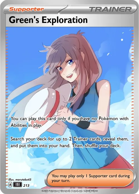 You can play this card only if you have no Pokémon with Abilities in play. Search your deck for up to 2 Trainer cards, reveal them, and put them into your hand. Then, shuffle your deck.