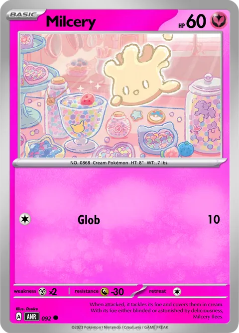 When attacked, it tackles its foe and covers them in cream. With its foe either blinded or astonished by deliciousness, Milcery flees.
