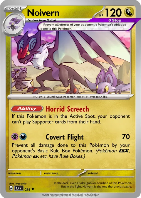 If this Pokémon is in the Active Spot, your opponent can't play Supporter cards from their hand.Covert Flight • 70