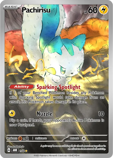 If 1 of your Benched Pokémon besides any Pokémon with Sparking Spotlight would take damage from an attack, this Pokémon takes damage in its place.Nuzzle • 10
