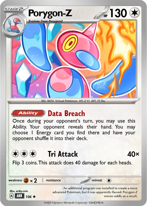 Once during your opponent's turn, you may use this Ability. Your opponent reveals their hand. You may choose 1 Energy card you find there and have your opponent shuffle it into their deck.Tri Attack • 40×