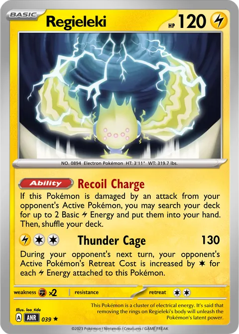 If this Pokémon is damaged by an attack from your opponent's Active Pokémon, you may search your deck for up to 2 Basic L Energy and put them into your hand. Then, shuffle your deck.Thunder Cage • 130