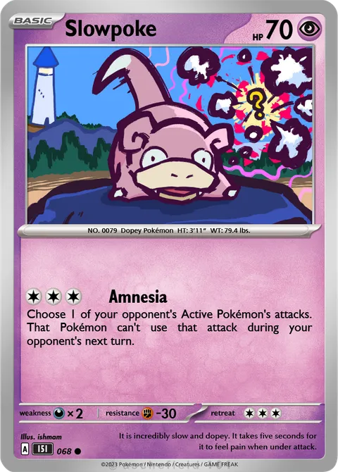 NO. 0079 Dopey Pokémon HT: 3’11“ WT: 79.4 lbs.illus. ishmam#068It is incredibly slow and dopey. It takes five seconds for it to feel pain when under attack.Created by @Meltan808TCG on 06 November 2025.