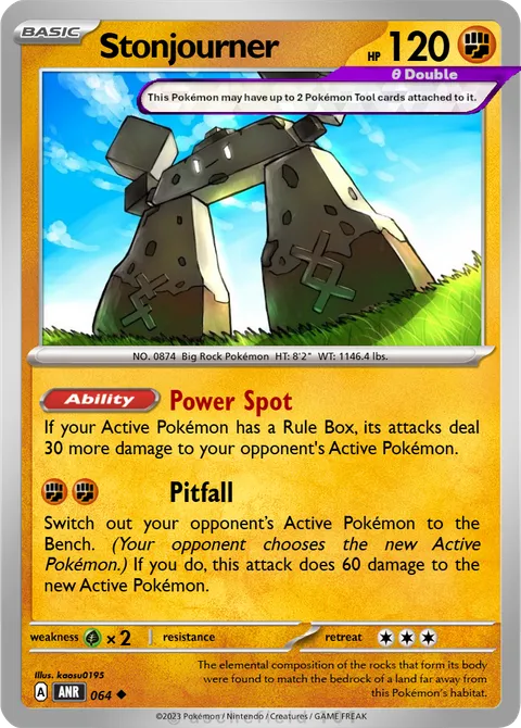 If your Active Pokémon has a Rule Box, its attacks deal 30 more damage to your opponent's Active Pokémon.Pitfall