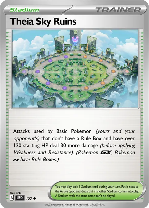 Attacks used by Basic Pokemon (yours and your opponent's) that don't have a Rule Box and have over 120 starting HP deal 30 more damage (before applying Weakness and Resistance). (Pokemon X, Pokemon e have Rule Boxes.)