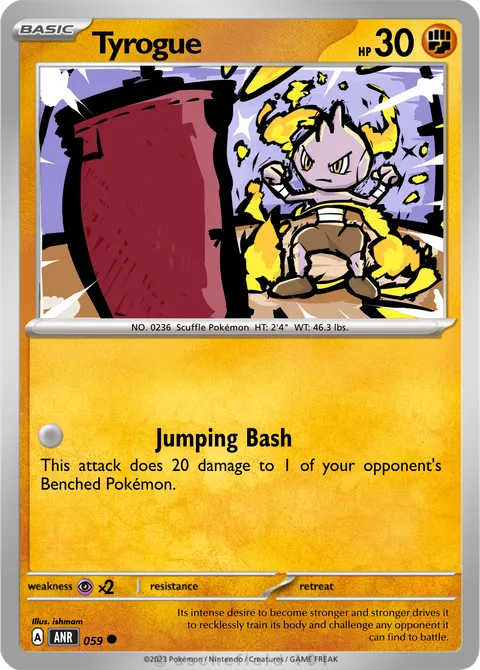 NO. 0236 Scuffle Pokémon HT: 2'4" WT: 46.3 lbs.illus. ishmam#059Its intense desire to become stronger and stronger drives it to recklessly train its body and challenge any opponent it can find to battle.Created by @Meltan808TCG on 08 September 2025.