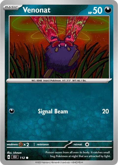 Poison oozes from all over its body. It catches small bug Pokémon at night that are attracted by light.
